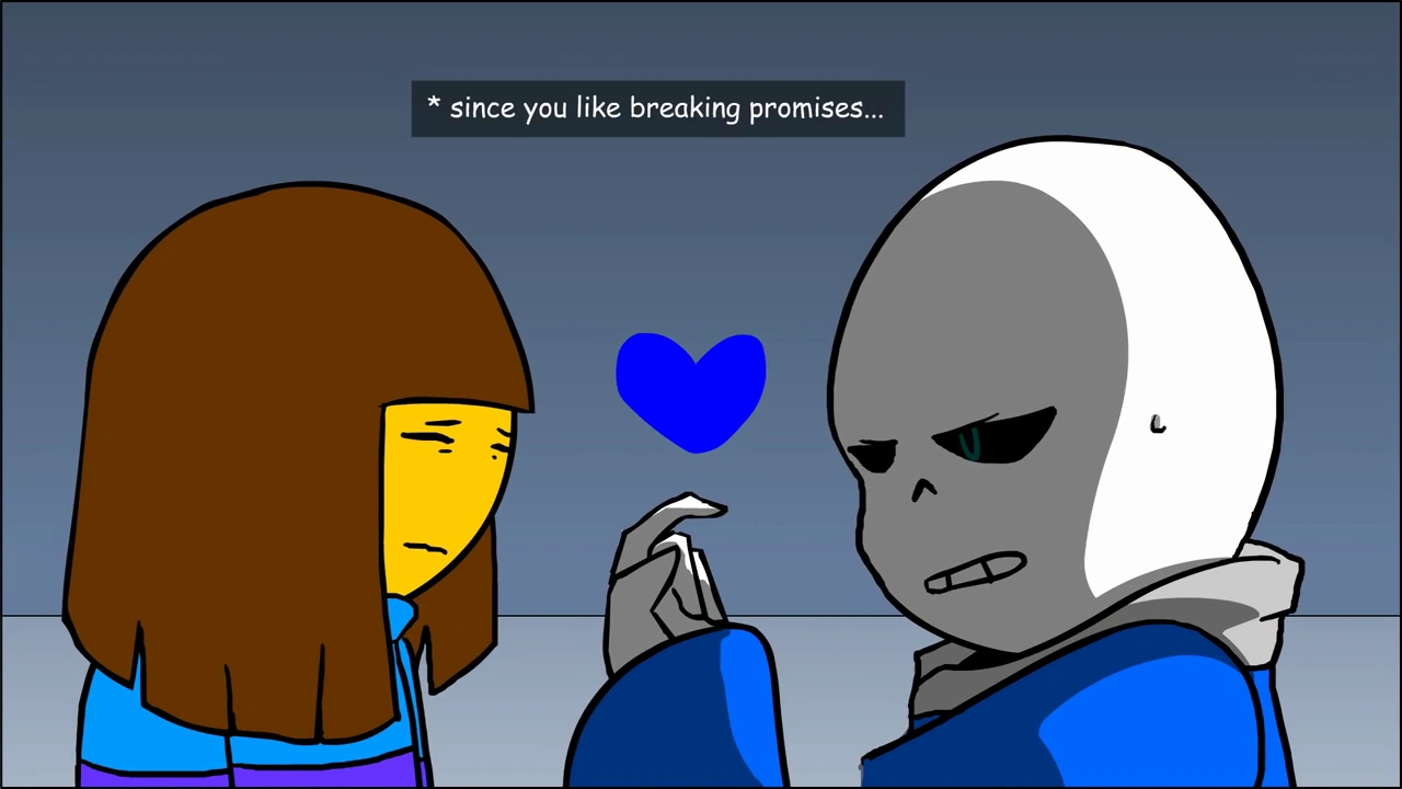 Discontent with the situation, Frisk, Sans, Asriel and Betty begin discussing. After Asriel suggests that they access the AMD cameras to find an answer, Frisk nervously states that they could try find a way to reset, angering Sans. The comedian furiously rebukes Frisk for breaking his promise, propounding that this timeline will not repeat again. During their argument, Sans expresses how he is upset with Frisk wanting to supposedly take away his future. Asriel disperses the confrontation, and Sans returns the friendship bracelet before teleporting to the Anti-Monsters Department Headquarters with Asriel.