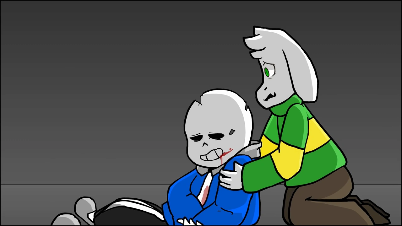 At the AMD building, Bête reveals her true, evil nature. When Sans tries to teleport, he is shot again by Jessica's AMR, weakening him. While Jessica's SOUL is cracking, Bête tries to take Asriel's rainbow SOUL by distracting him with a hallucination of Chara. When Bête throws a Spear of Fear towards Asriel, Sans teleports in front of him, taking the blow. Fatally injured, Sans starts turning into dust before a tearful Asriel's eyes, and after he asks Asriel to enjoy the future for him, Bête feeds Sans's SOUL to Akumu, turning Sans into dust. Meanwhile, Gaster feels in his SOUL that Sans has died, dropping his mug, his blue eye dying out, and heartbroken.